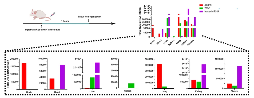 据介绍,动物实验结果显示,其脑靶向的工程化外泌体可高效穿透血脑屏障,帮助递送药物分子脑血比达到2.0,是常规CNS药物透脑效率的10倍;肺组织递送能力较领域头部企业原有技术提高200倍。(见下图)