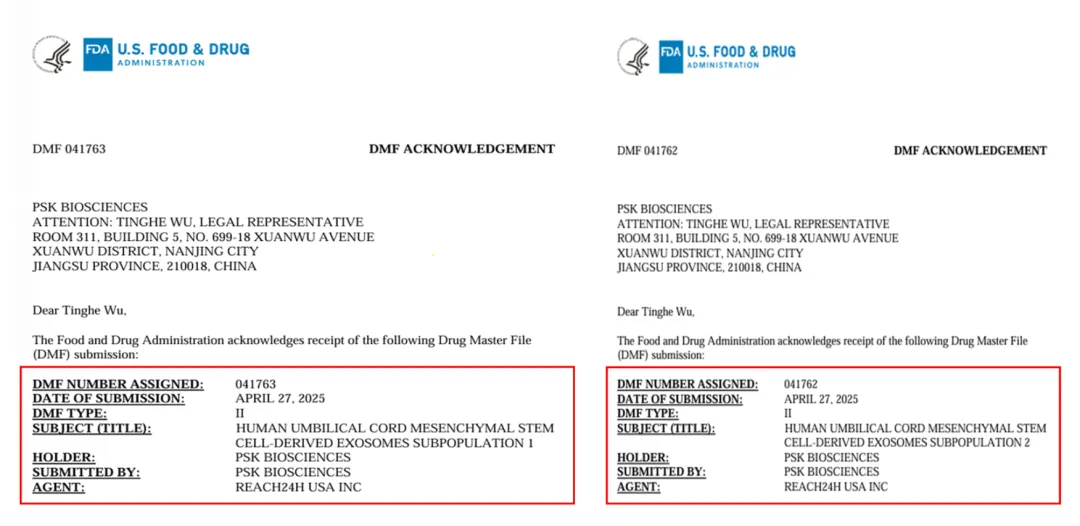 目前,S1亚群和S2亚群均通过FDA DMF II型备案和INCI备案,是全球第一家MSC外泌体亚群DMF和INCI双备案的公司。在吴庭鹤看来,双备案可为外泌体在药品领域提供国际合规“身份证”和市场准入“敲门砖”,保障产品后续在医药与医美市场的国际布局。
