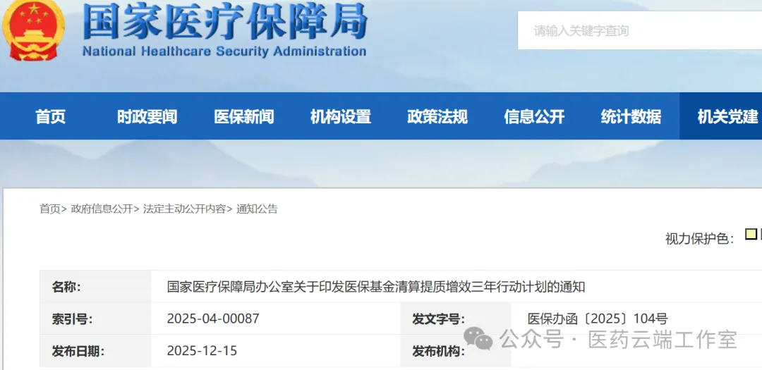 12月15日,国家医保局发布《国家医疗保障局办公室关于印发医保基金清算提质增效三年行动计划的通知》。