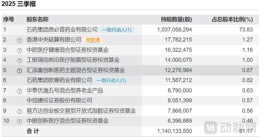 图3. 石药创新2025年三季报前十大股东情况(资料来源:wind)