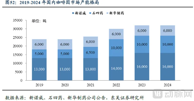 图4. 咖啡因市场产能格局(资料来源:东吴证券)