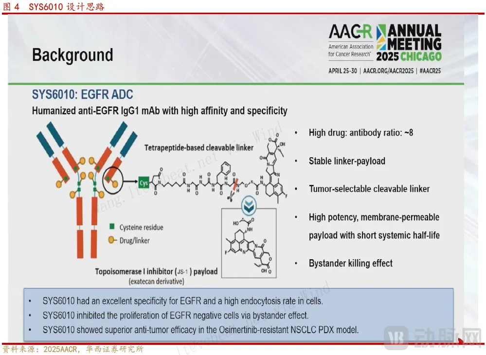 SYS6010以拓扑异构酶Ⅰ抑制剂为有效载荷,通过EGFR靶向引导信号直接杀伤癌细胞。这种作用机制使其能够规避因EGFR表达下调引发的常见耐药机制,即使在耐药患者中仍有疗效。