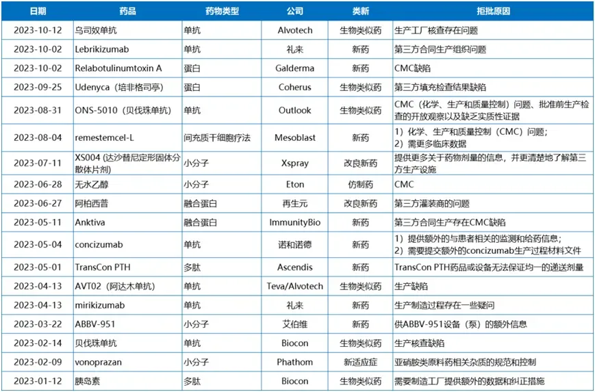 制药行业全球化生产的今天,这种供应链风险,是几乎所有MNC都必须面对、事关产品获批的难题。2023年,FDA共发出36份CRL, 18项与生产缺陷有关。今年7月,FDA首次公开CRL数据库,2020至2024年间发出的202份CRL,CMC问题占比约一半。