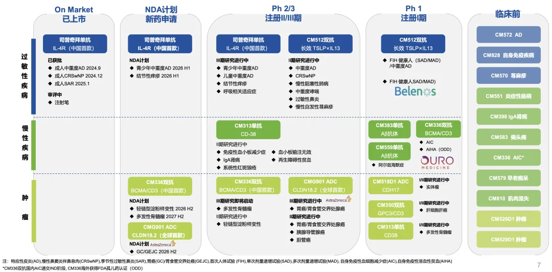 抗体平台(根基与进化): 从IL-4Rα单抗到长效双抗(如CM512)、透血脑屏障抗体,技术持续迭代。