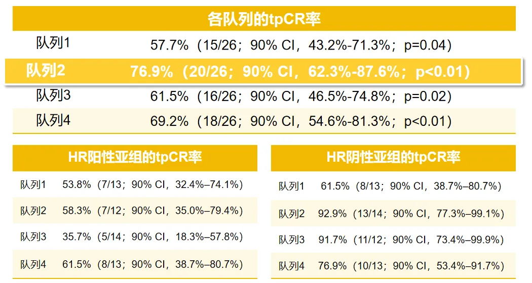 正大天晴针对 ECD2 及 ECD4 双非重叠表位开发了双抗 ADC TQB2102,突围方向为 HER2 阳性乳腺癌新辅助治疗。最新研究数据显示,TQB2102 在这个适应症上取得了当前最高的总病理完全缓解率(tpCR),数值达到了 76.9%。