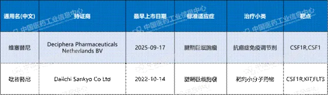 全球药企对这一狭窄赛道的突破,始于对集落刺激因子1受体(CSF-1R)这一关键靶点的验证。第一三共的吡昔替尼凭借卓越疗效率先获批,成为全球首款药物。然而,其伴随的黑框警告(警示严重肝毒性风险)为其临床应用套上了沉重枷锁,迫使医生和患者必须在疗效与安全之间进行艰难权衡。随后,小野制药的维塞替尼获批,其在安全性上的优化设计,旨在解决前代药物的核心短板,标志该领域进入“安全性迭代”的竞争新阶段。