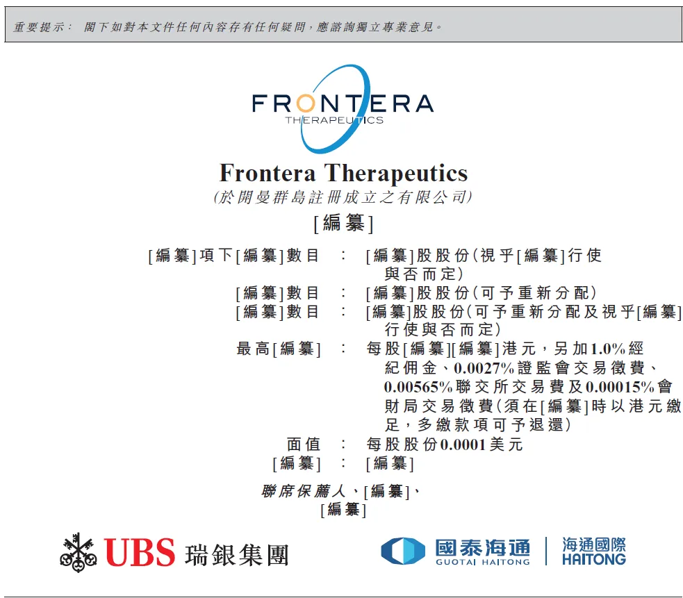 12月23日,基因治疗公司芳拓生物(Frontera)提交港股上市A1文件,成为首家AAV基因治疗港股上市申请,UBS和国泰海通担任联系保荐人。