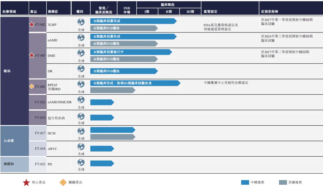 公司的产品管线包括8款AAV基因疗法,两款核心产品FT-002用于治疗XLRP,FT-003用于治疗nAMD和DME,一款关键产品FT-001用于好资料RPE65等位基因突变的IRD适应症,其他5款产品处于早期临床或临床前阶段。