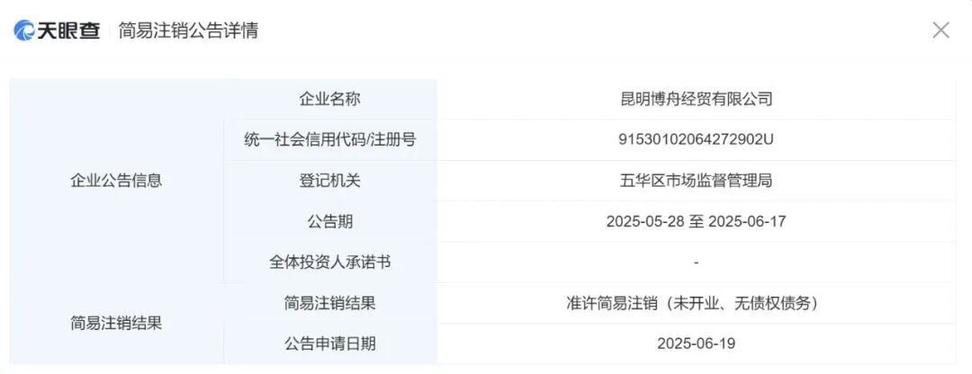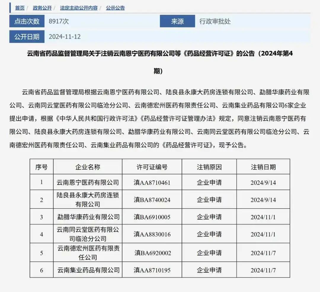 真正引发行业争议的是:名单里不少企业已“名存实亡”。今年3月底,云南省保山市医药有限责任公司已申请注销《药品经营许可证》;云南集业药品有限公司早在2024年11月就注销了GSP资质;昆明博舟经贸有限公司也已于2025年6月完成工商注销。