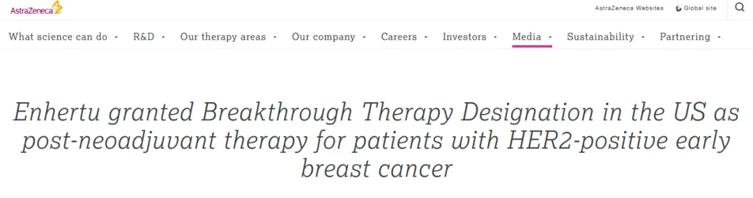 近日,阿斯利康与第一三共宣布,双方联合开发的重磅 ADC 药物德曲妥珠单抗(Enhertu)获美国 FDA 授予突破性疗法认定(BTD),用于治疗接受新辅助治疗后乳腺和/或腋窝淋巴结仍存在残留侵袭性疾病、且具有疾病复发高风险的 HER2 阳性早期乳腺癌成年患者。
