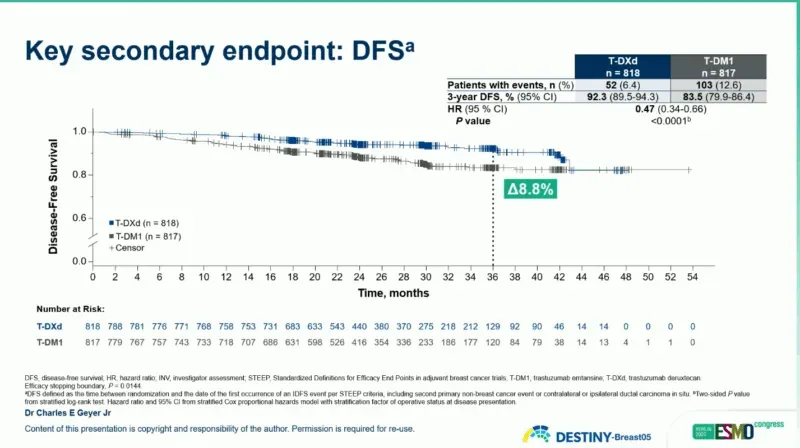 ▲ DESTINY-Breast 05 研究的 DFS 数据