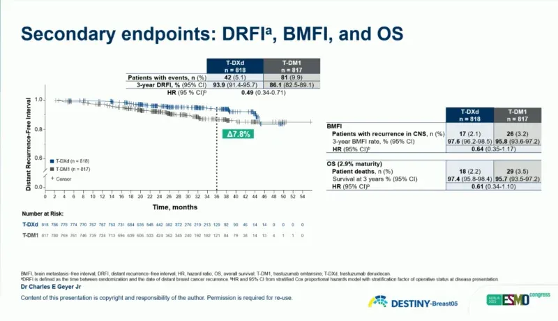▲ DESTINY-Breast 05 研究的 DRFI、BMFI 和 OS 数据