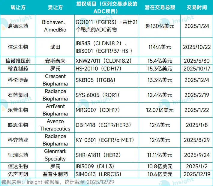 图 3:2025 年总额超 10 亿美元的国产 ADC 交易