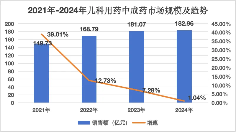 米内网数据显示,我国儿科中成药市场正在经历一场“降温”,从2021年39.01%的高速增长,一路放缓至2024年的1.04%。