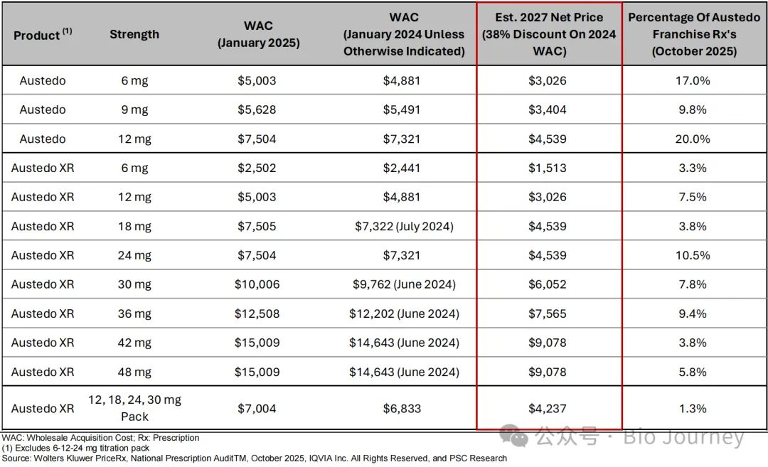 药价谈判对所有竞争对手(尤其是 Ingrezza)的影响是普适的,因此 Austedo 的相对竞争优势依然能保持: