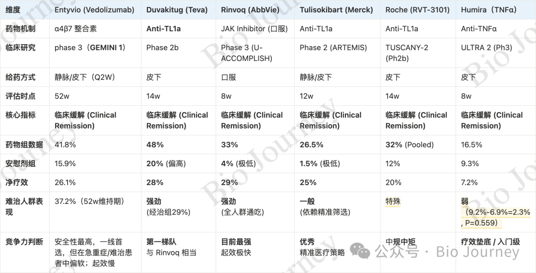 在Teva的新药管线里,抗TL1a抗体(Duvakitug)是最值得关注的“大杀器”。它针对的是炎症性肠病(IBD),这是目前全球药企争夺最激烈的赛道之一,Merck和Roche都已经砸了上百亿美元进场。
