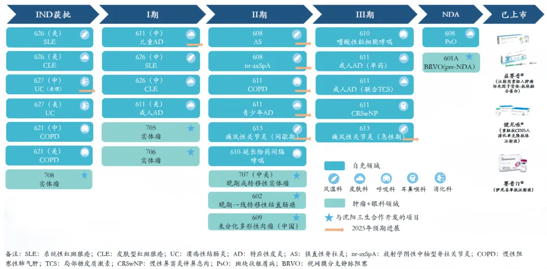 三生国健为三生集团旗下创新抗体平台,2020 年分拆上市,目前已有 3 款产品上市,在研管线达 22 个。