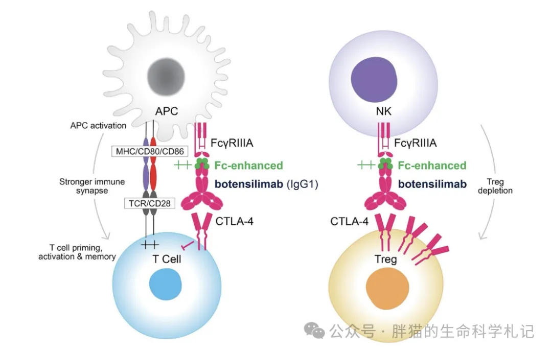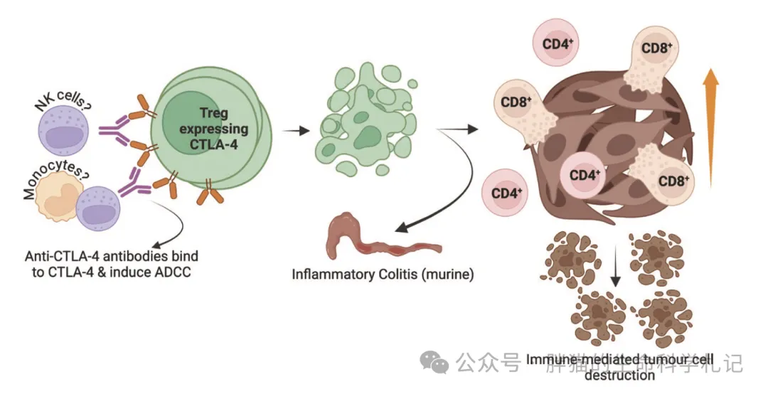 所以就有研究认为CTLA-4的抗体的抗肿瘤效果不仅仅是通过阻断CTLA-4信号通路实现,更重要的是通过抗体介导的ADCC作用清除肿瘤内高表达CTLA-4的Treg细胞来实现的。