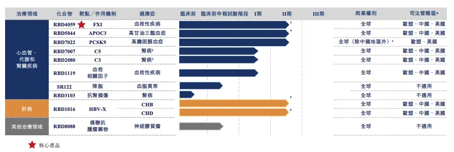 招股书显示,RBD4059 是全球首款用于治疗血栓性疾病的临床阶段 siRNA 药物,目前正在开展 II 期研究。该产品通过选择性抑制 FXI,可在不显著增加出血风险(传统抗凝剂的常见局限性)的情况下降低血栓形成的风险,同时以低频率的给药产生持久的疗效,提高患者的依从性。