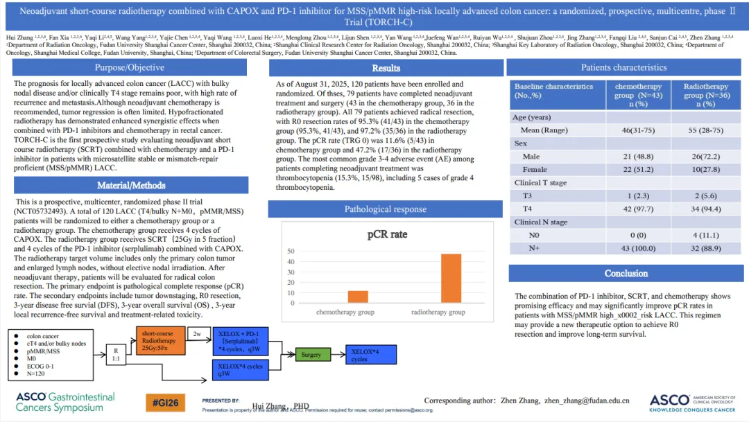 新辅助短程放疗联合 CAPOX 方案与 PD-1 抑制剂用于 MSS/pMMR 高危局部晚期结肠癌:一项随机、前瞻性、多中心 Ⅱ 期试验(TORCH-C)