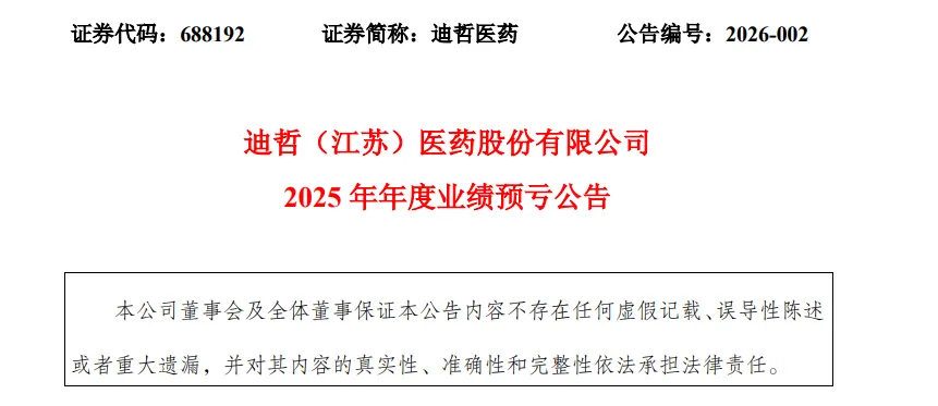 1 月 12 日,迪哲医药发布 2025 年年度业绩预亏公告。根据公告,迪哲医药 2025 年度营业收入预计为 8 亿元左右,同比增加 122.28% 左右。