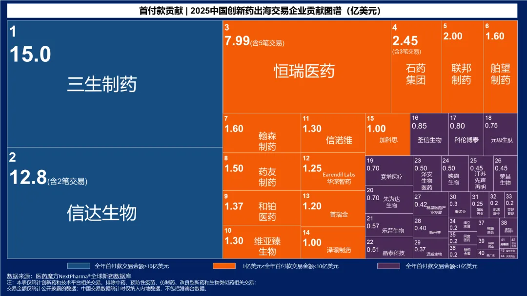在2025年中国创新药海外授权千亿美元“总交易额”的成绩下,“首付款”的绝对数额及其比重(首付比),或是衡量交易诚意、风险分配和资产价值的核心指标。