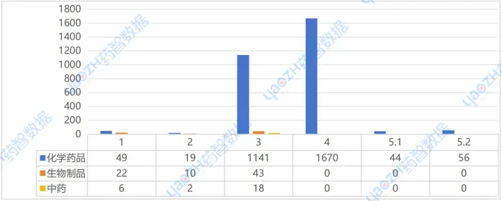 化学药品仿制药主导,生物制品与中药聚焦创新。