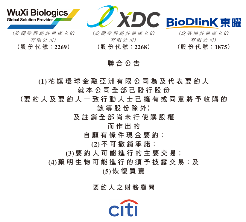 1月14日,药明生物、药明合联发布公告宣布一项收购要约,药明合联将收购东曜药业。