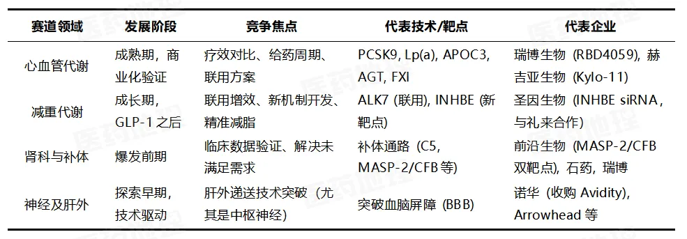 随着技术成熟与资本持续涌入,当前小核酸药物四大核心赛道的竞争格局初步成形,共同指向一个更为广阔的未来。
