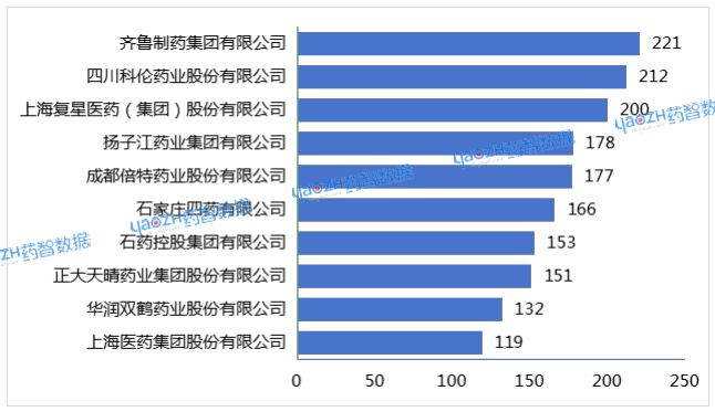 注:以药品名称+持有人对应的集团企业进行除重后统计
