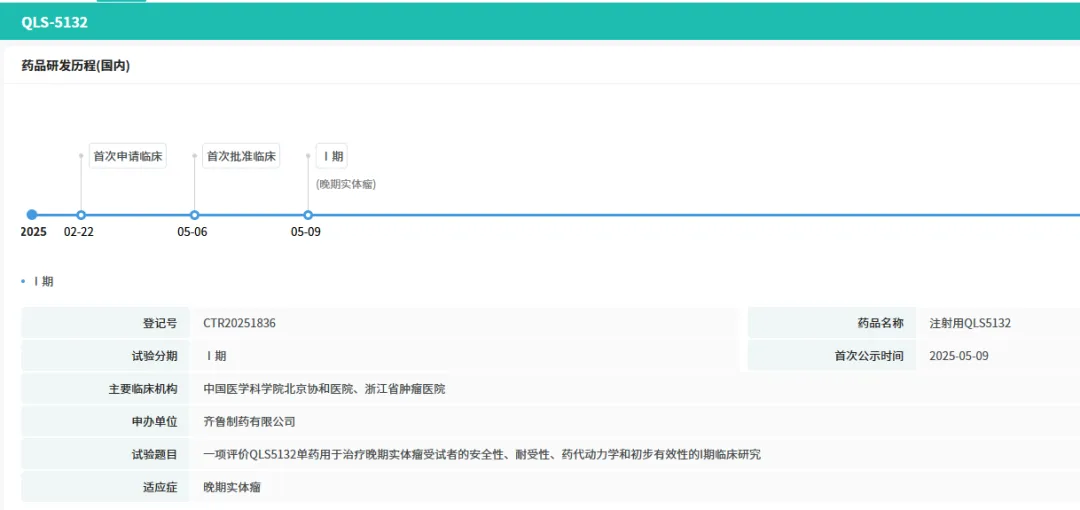 CLDN6作为紧密连接蛋白家族成员,在卵巢癌、睾丸癌、肺癌等高发实体瘤中呈特异性高表达,正常组织分布极少,是近年肿瘤靶向治疗的“黄金靶点”。据公开信息,QLS5132已于2025年5月6日首次批准临床,是目前齐鲁制药首款进入临床阶段的自研ADC药物。