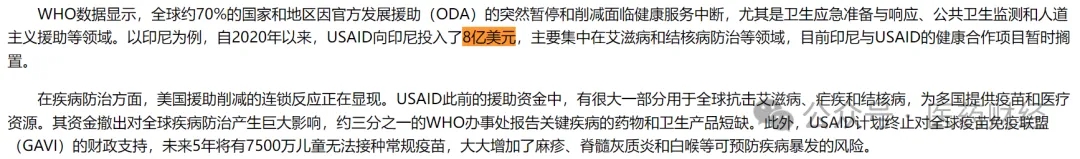 美国国际开发署对印尼等国8亿美元的艾滋病和结核病防治项目的搁置,仅是这场资金断流危机的冰山一角。