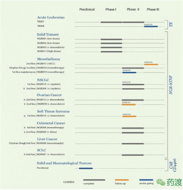 MolMed是一家专注于研究、开发新型抗癌疗法的医药生物技术公司。MolMed 管线包括: 第一个,Zalmoxis® (TK)是一种细胞为基础的基因免疫疗法,主要针对高危的血液系统恶性肿瘤。第二个,NGR-hTNF,一种新型的治疗实体瘤的药物,目前,显示出有抗肿瘤活性。第三个,CAR-CD44v6,一种基因免疫疗法,可能对许多血液系统恶性肿瘤和几个上皮肿瘤有效,目前处于临床前。‘’