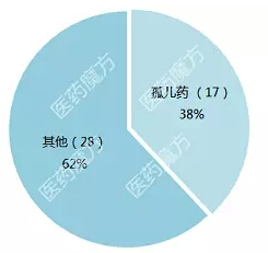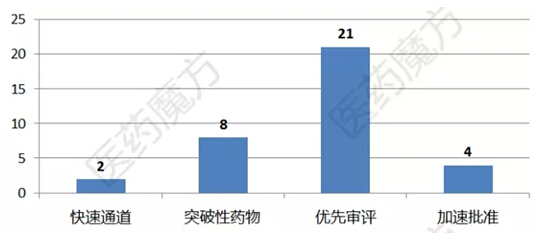 从审批类型上看,45个新药中有17个被授予孤儿药资格。共有21个药物获得优先审评资格,8个药物获得突破性药物资格,4个药物获得加速批准。