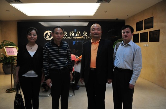 调研组与重庆药品交易所领导合影(从左一右:冯岚,敖荣峰,宋瑞霖,陈昌雄)