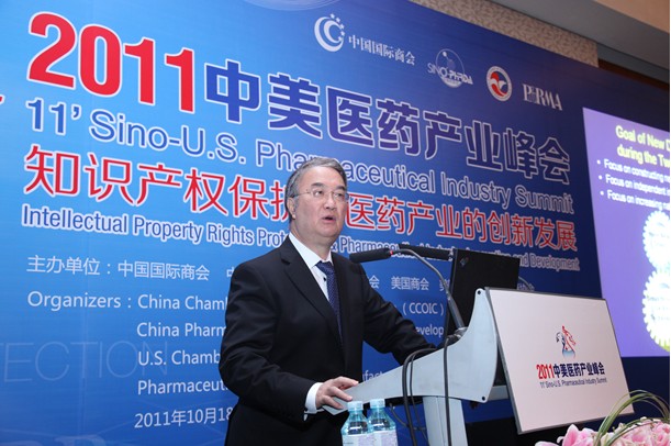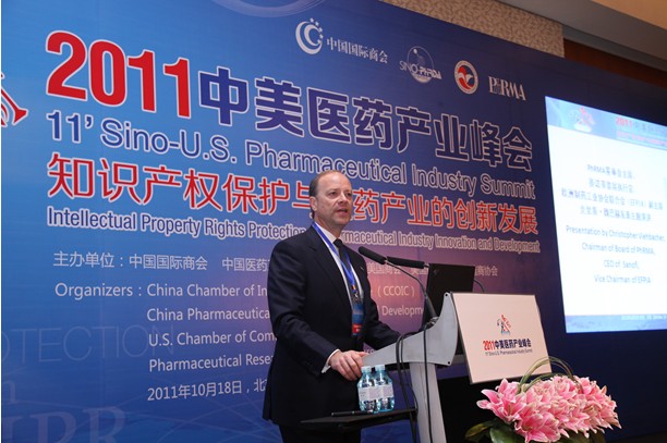 10月18日,北京金融街威斯汀大酒店聚宝厅嘉宾云集。由中国国际商会、中国医药工业科研开发促进会会、美国商会和美国药品研究与制药商协会共同主办的“2011中美医药产业峰会”在这里隆重举行。应邀参加会议中外领导和嘉宾达200余人。