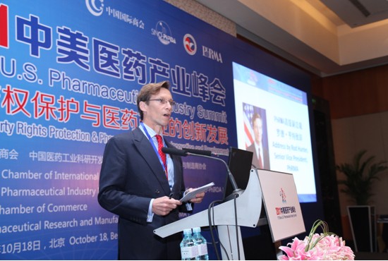 美国商会国际知识产权中心执行主任马克?埃利奥特、 PhRMA高级副总裁罗德?亨特等先后致辞。马克·埃利奥特说,美国商会是世界上最大的商会组织,我们的办公室就在白宫对面,我们代表美国300多万家企业和组织的利益。非常高兴美国商会成为今年中美医药产业峰会的主办方之一。感谢桑国卫副委员长和魏巴赫先生,感谢他们两人的远见,促成了峰会的成功举办。事实上在当今世界,哪两个国家的双边经济和贸易关系是最重要的呢?那肯定就是中美的双边经贸关系。美国商会致力于使两国的双边经贸关系继续保持强劲的增长。知识产权保护是非常重要的,它能够促进国家的创新能力发展,而且确保创新是持久有效的。无论是在哪一个地区,也不管是大企业还是小企业,现在都在研发方面做出了重大投资,以便为市场奉献出创新的产品,对我们医药企业来说,还意味着能够挽救病人的生命,救死扶伤。中国政府最近开展的知识产权保护专项执法行动,让我们美国商会觉得倍受鼓舞,希望这些活动能持续下去。我们美国商会也衷心盼望能跟中国政府和中国业界今后继续保持合作。