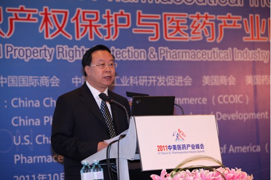 卫生部副部长陈啸宏致辞,代表卫生部对峰会召开表示热烈祝贺。他说,众所周知,医药卫生事业的发展事关亿万群众的健康,是一个重大的民生问题。对于任何一个国家的公共卫生事业健康发展来说,医药产业都起着重要的促进作用。推动医药企业提高自主创新能力,促进医药产业结构的优化、升级,是建设药品供应保障体系、建立健全基本医疗卫生制度的重要内容。中国政府高度重视医药科技创新和相关产业发展,而医药科技创新和产业发展需要良好的知识产权制度和环境来保障。希望中美双方能够紧密围绕全球医药卫生需求,共同携手为全人类的卫生健康事业谋得更大、更多的福利。