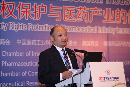 国家食品药品监督管理局副局长边振甲致辞。他说, 本届峰会主题是“知识产权保护与医药产业创新发展”,这一主题选得非常好。众所周知,药品的创新发明具有投资大、风险大、难度高、周期长、市场广的特征,是对知识产权保护,特别是专利保护依存度最高的技术领域之一。美国著名经济学家曼斯菲尔德曾经研究分析得出,如果没有专利保护,60%的药品发明不能研究出来,65%不会被利用。而药品专利权的保护,与药品监督管理部门的行政注册审批也密切相关。如果药品监管部门审批的药品涉及到他人的专利,则审批行为必然影响到药品专利权人的权益。我们注册审批药品的时候,对涉及药品专利的问题也给予高度关注,一直在寻求比较完善的解决方案,力图在药品注册审批工作过程中,最大限度地维护专利权人的合法权益。在这方面,我们还处在不断完善的阶段,近年来,中国药促会与美国药品研究与制造商协会做了许多工作,我们表示赞赏。