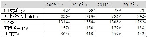 表3表明,近年来1.1类申报量基本维持在70个上下,3类新药每年增加近百个,国家鼓励创新的政策在药品申报结构上开始初步显现。