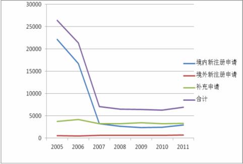 注:“其他”指按《药品注册管理办法》(2005年版)分类申报的一、二、三、四类药品。数量以受理号计。