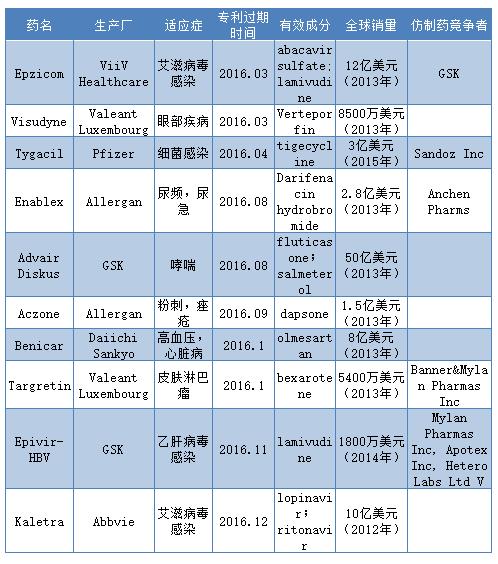 当一个新药的专利即将过期的时候,往往是最能激起药厂之间的竞争的。其一是该药的生产本厂会不遗余力的进行更深层研发,希望能开发出该药的新用途,试图延长专利期,从而延长独享这部分市场的期限;其二是其他药厂会紧跟步伐,着手研制仿制药并抢先申请上市,试图从该市场中分一杯羹。2016年刚刚开始,让我们来一起看一下即将在今年专利过期的几大畅销药!