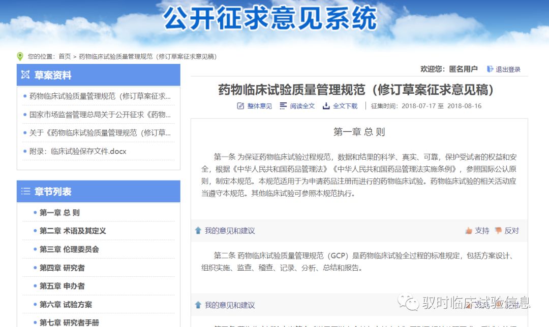 国家市场监督管理总局关于公开征求《药物临床试验质量管理规范(修订草案征求意见稿)》意见的通知
