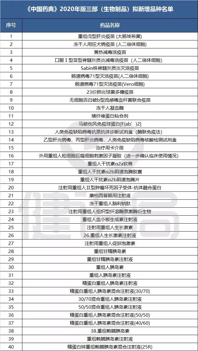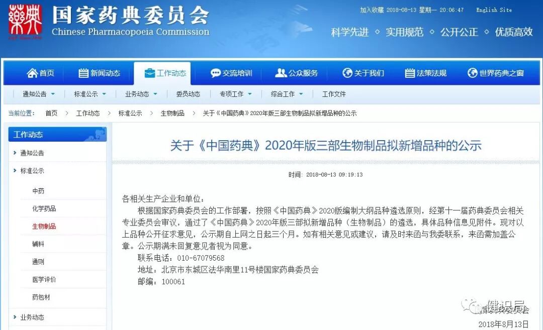 今天(8月13日),国家药典委发布通知称,按照《中国药典》2020版编制大纲品种遴选原则,经第十一届药典委员会相关专业委员会审议,通过了《中国药典》2020年版三部拟新增品种(生物制品)的遴选。
