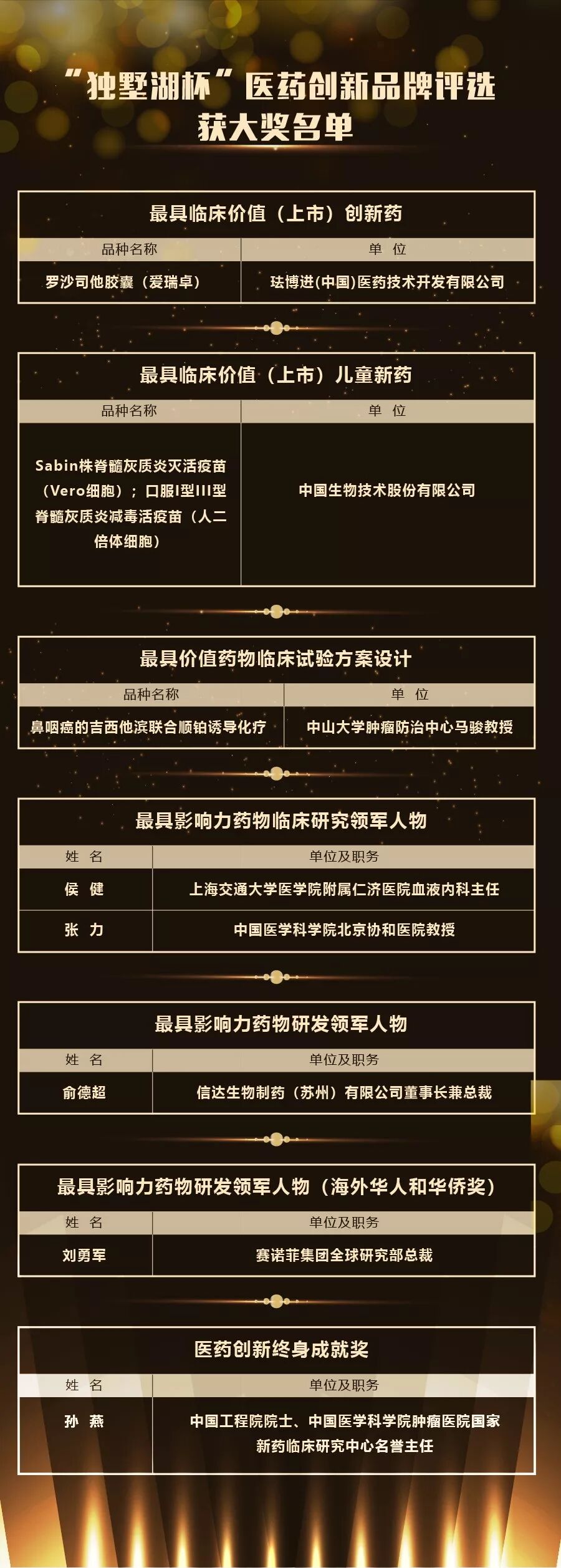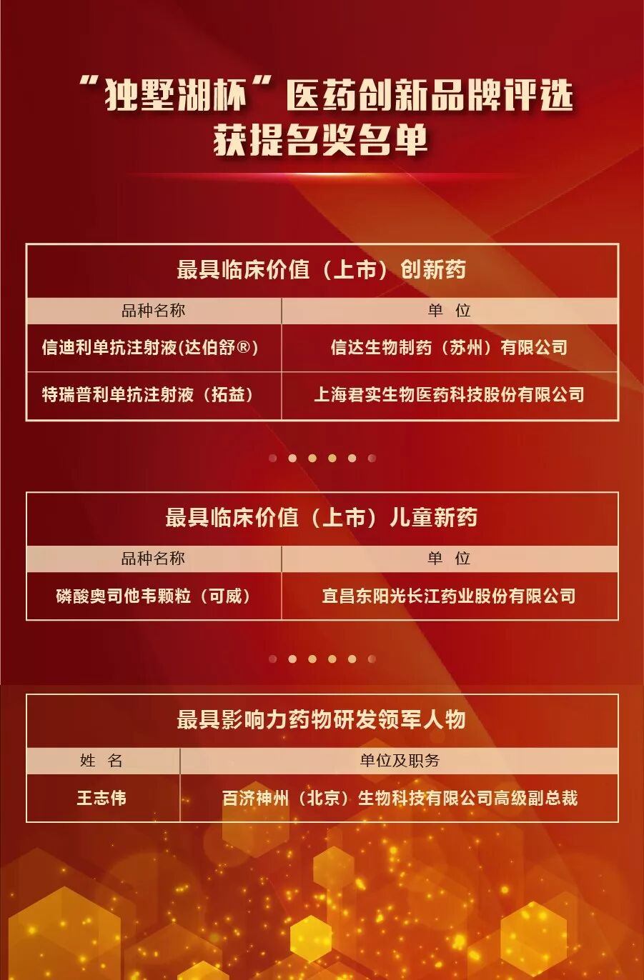 六、创新药奖项结果: