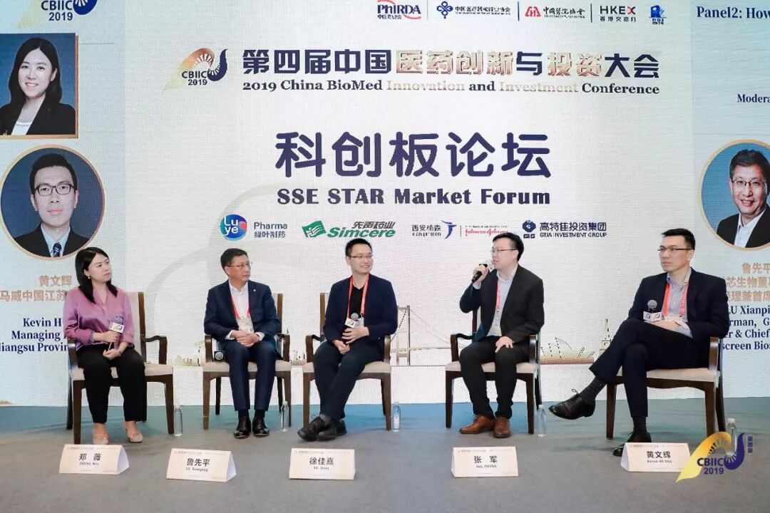 从左至右:天风证券医药首席分析师郑薇(主持人),微芯生物董事长鲁先平,兴业证券研究院院长助理、医药首席分析师徐佳熹,中信证券投行委医疗健康组执行总经理张军,毕马威中国江苏首席合伙人黄文辉