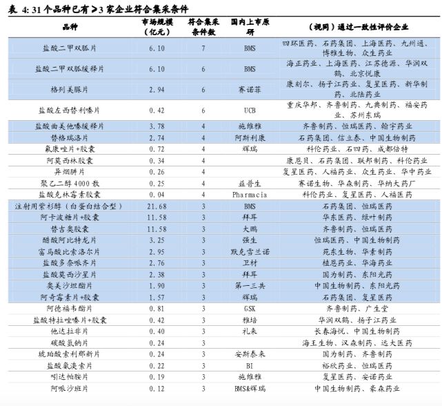 其中,31个品种已有≥3家企业符合集采条件(原研或通过评价企业);47个品种有2家企业符合集采条件;19个品种只有1家符合集采条件。