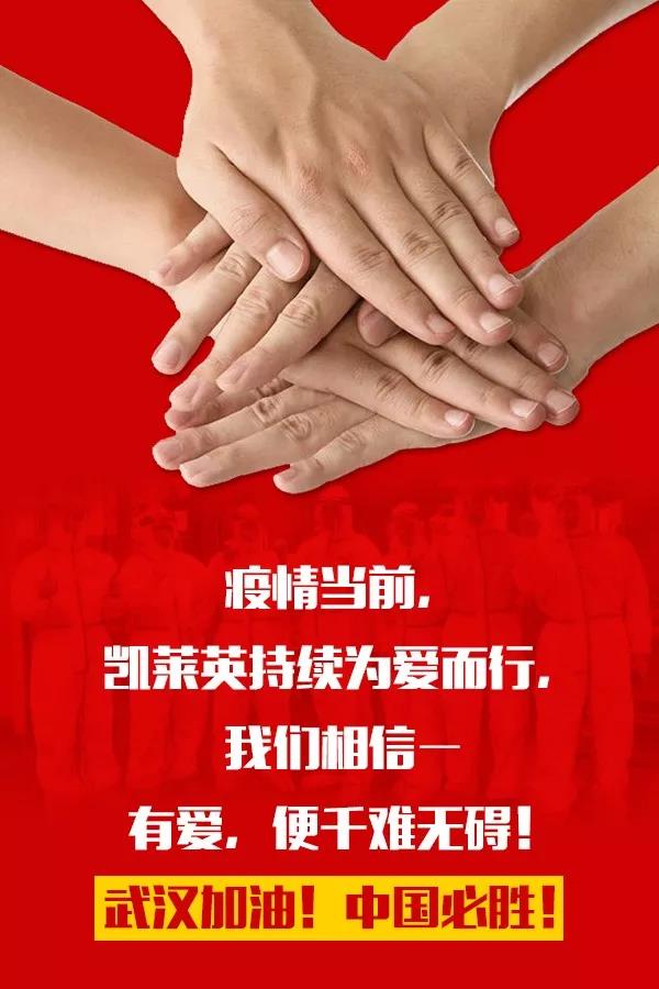 此时此刻,正有一群人冲在前方,用自己的平凡之躯,为身后的亿万中国人筑起防护的堡垒。扶危渡厄,医者担当。这个世界如果真有天使,那一定就是他们的模样。除了做好防护,保护好自己的同时,我们也是抗击疫情最坚强的后盾,即便是每一滴小小的爱心,都可以汇聚成涌泉之恩……希望凯莱英的一点绵薄之力,可以汇聚国人最温暖而伟大的爱的力量,共助武汉以及全国抗击疫情,共度难关!