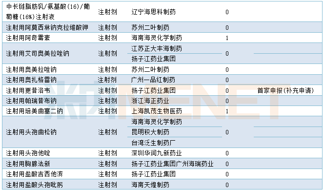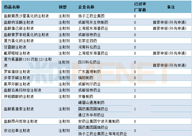 2020年1月CDE补充申请(一致性评价)注射剂品种承办情况