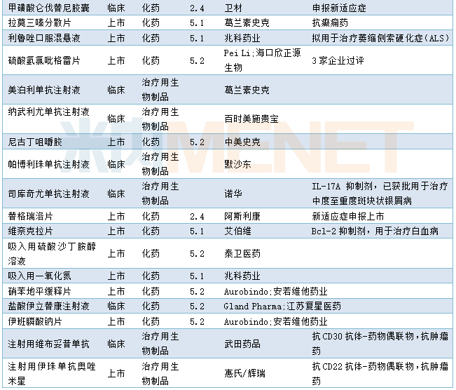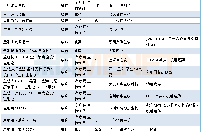 1月CDE共承办31个药物的进口申请,其中1类新药有2个,2类改良型新药有3个,5.1类进口原研药6个,5.2类进口仿制药9个。具体情况请见下表: